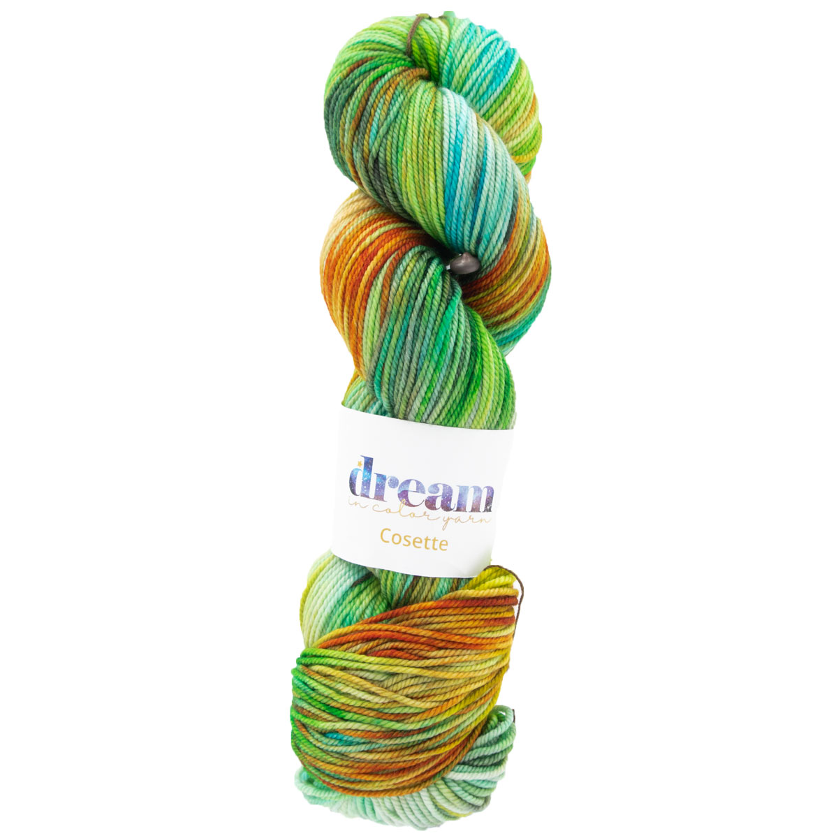 Cosette, a sublime fusion of superwash wool with a touch of cashmere and nylon. Cosette offers a luminous halo, sumptuously soft feel, and a light airy drape. Its captivating qualities make it the perfect match for any DK-weight sweater pattern, accessories, or other projects where elegance and ease-of-care converge! After one squish, you'll understand why it's a top choice for heirloom-quality creations.