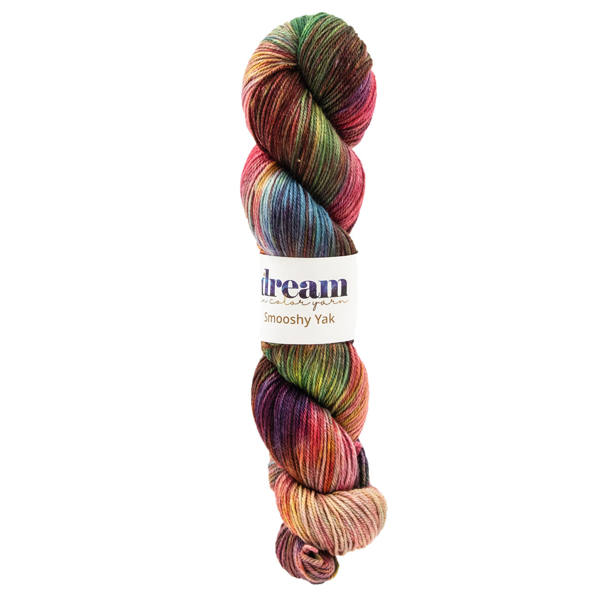 Meet Smooshy Yak, the YAK cousin to Dream In Color's top-selling Smooshy Cashmere. This easy-care yarn is beloved by knitters and crocheters alike. And for good reason - the moment you touch it, you'll understand why it's such a delight. Created for incredible stitch definition, its optimal twist brings out the best in your work! Its radiant sheen amplifies our jewel-tone colors, making them truly pop. With a luxurious blend of super-soft merino and yak, Smooshy Yak is the go-to choice for shawls, scarves, and any project you'd love to wear close to your skin!