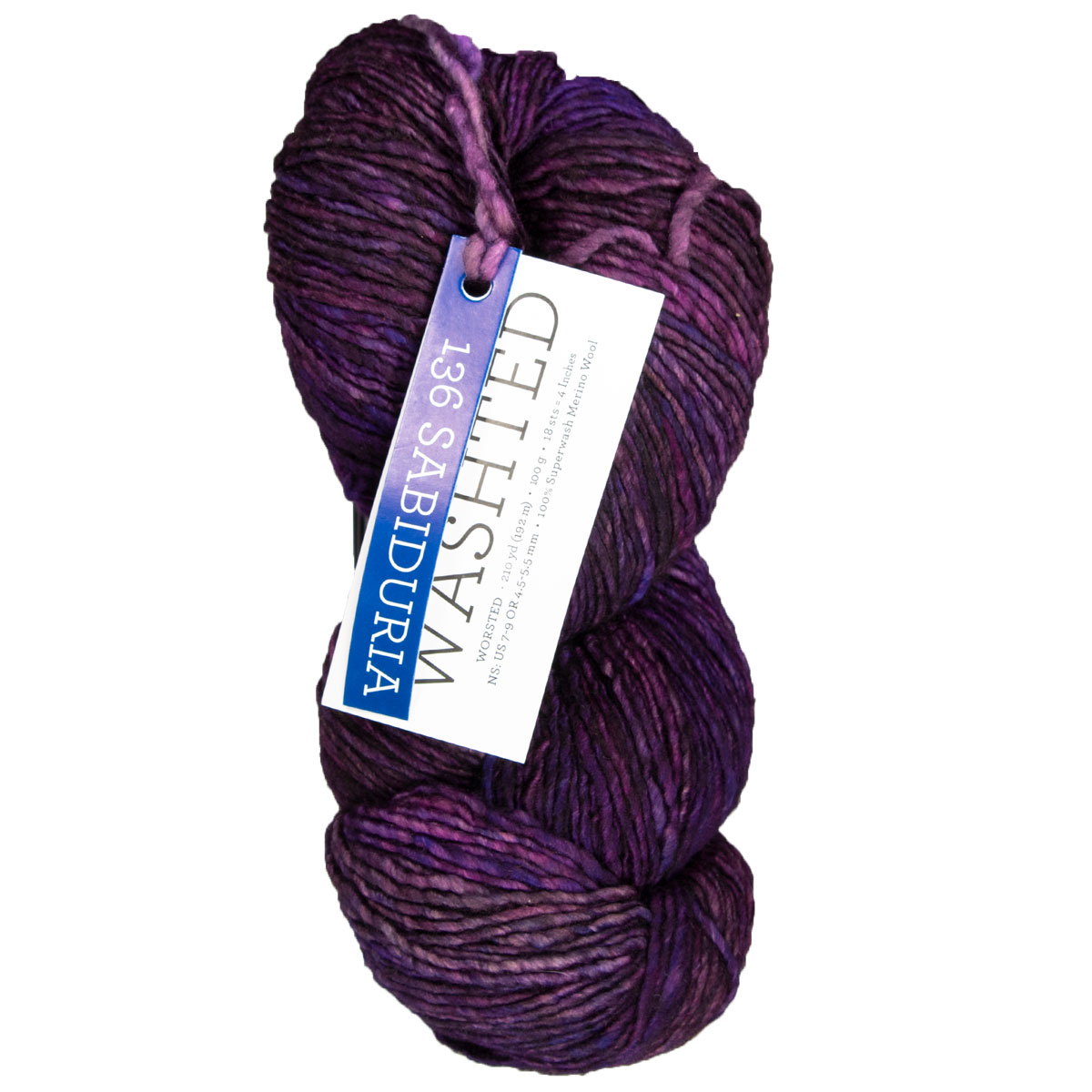 Incredibly soft and exquisitely hand-dyed, Malabrigo Washted Merino is much like its big sister, Malabrigo Worsted Merino, with one small difference... it's MACHINE-WASHABLE! With the subtle variations in color and texture only hand-dyed yarns have, plus all the sensuality of a good single ply yarn, you can't go wrong with Washted Merino! Each skein holds 205 yards to it, making your next project a breeze to knit or crochet up!