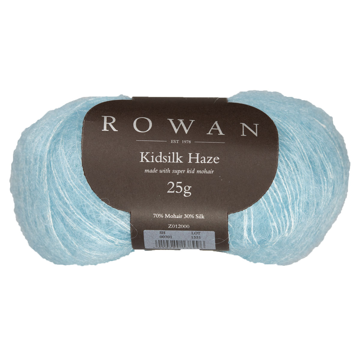 Combine the luxuriously soft feel of kid mohair and the fine feel of silk and what do you get? Rowan's Kidsilk Haze! This oh-so soft and ever popular base is as light and airy as it is beautiful and versatile. Work up this laceweight beauty onto your hooks and needles and be amazed at the unique textures that form on your next lace shawl, fuzzy sweater, or soft top project, the possibilities are endless! Not to mention the beautiful halo created by the kid mohair that looks gorgeous in every colorway!