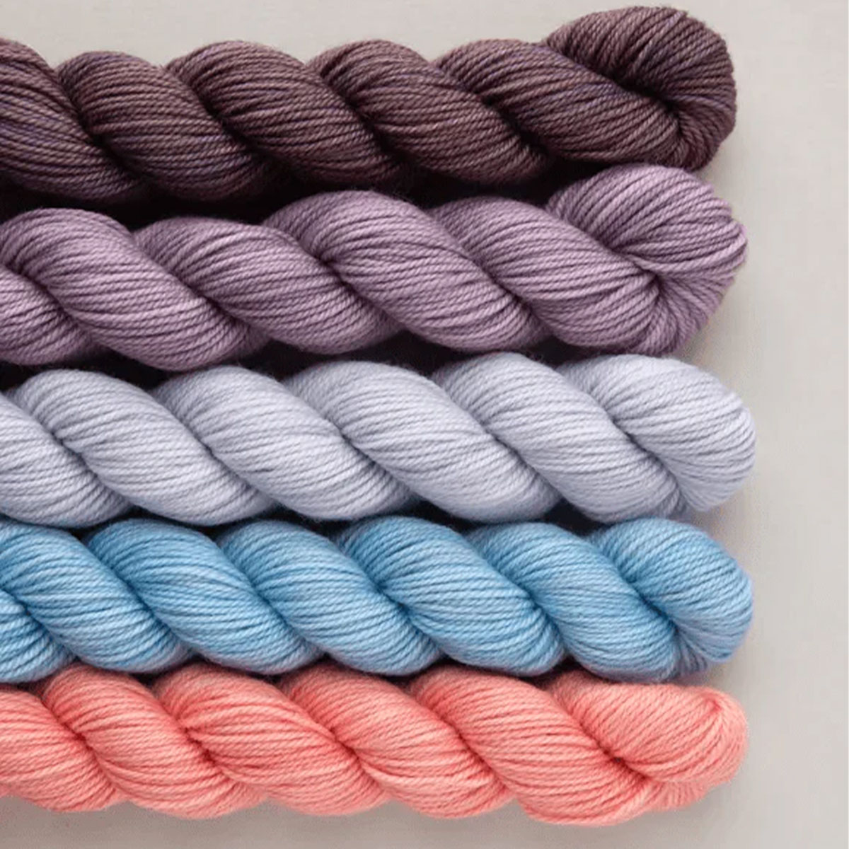 These mini-skeins of SweetGeorgia Tough Love Sock are perfect for adding a pop of color to your knitting! We believe there's something for everyone to love in these fingering-weight assortments - from pinks to teals to purples to multis like Candy Shop. Knit them into a striped shawl or color-blocked cowl, ombre socks, or a Fair Isle hat - the possibilities are endless!