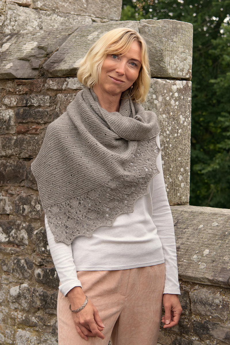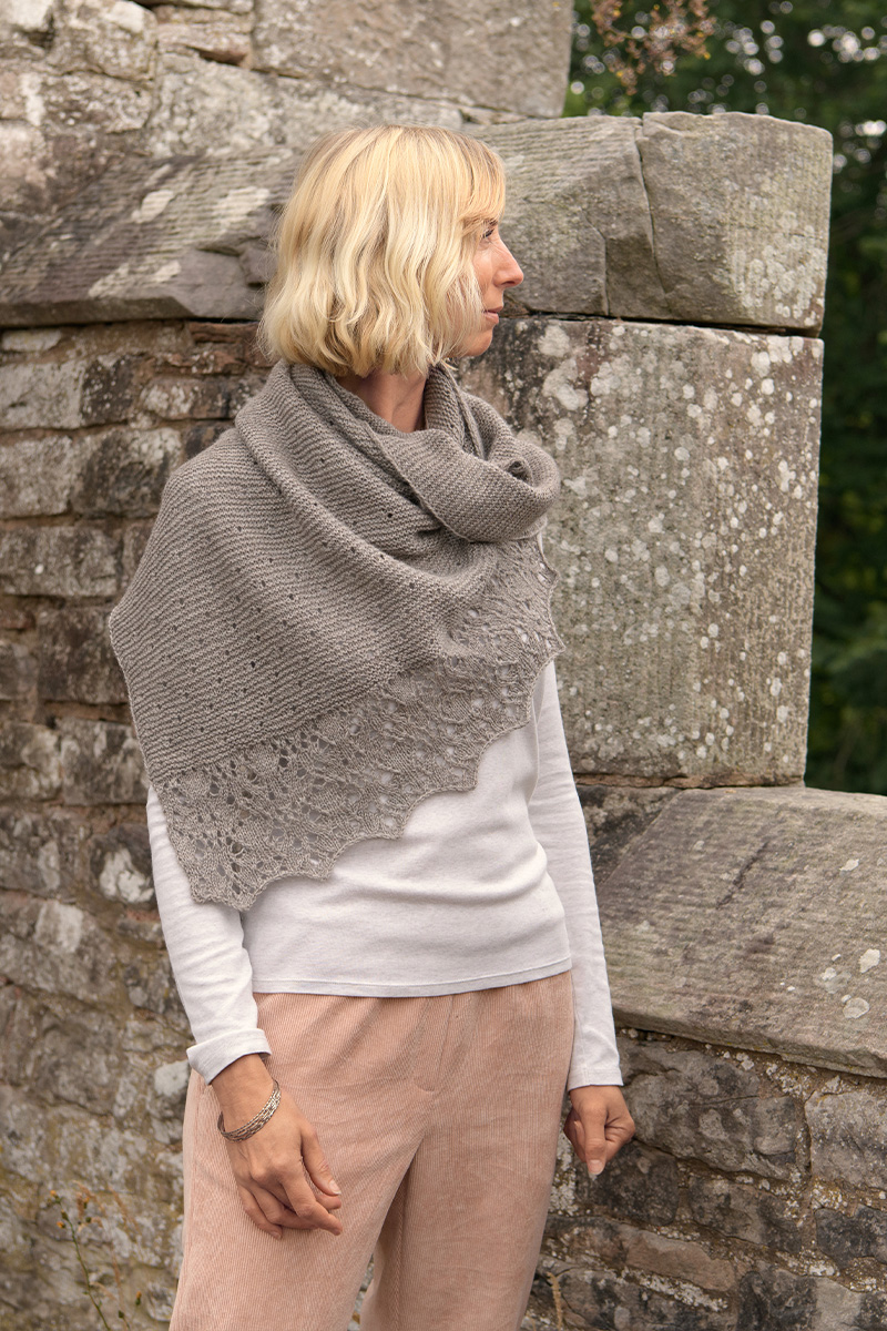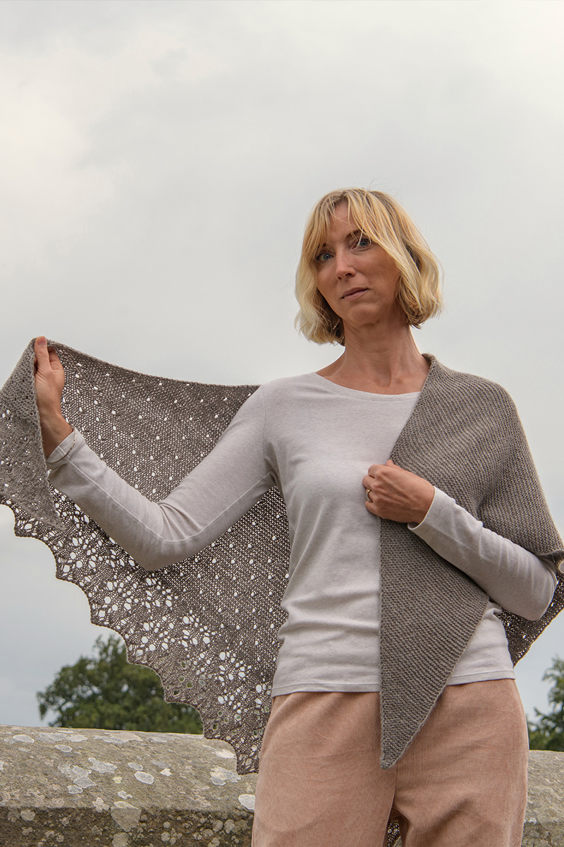 Create this sophisticated triangular shawl full of elegance and texture with the ultra soft strands of the Fibre Company! Read the full description...