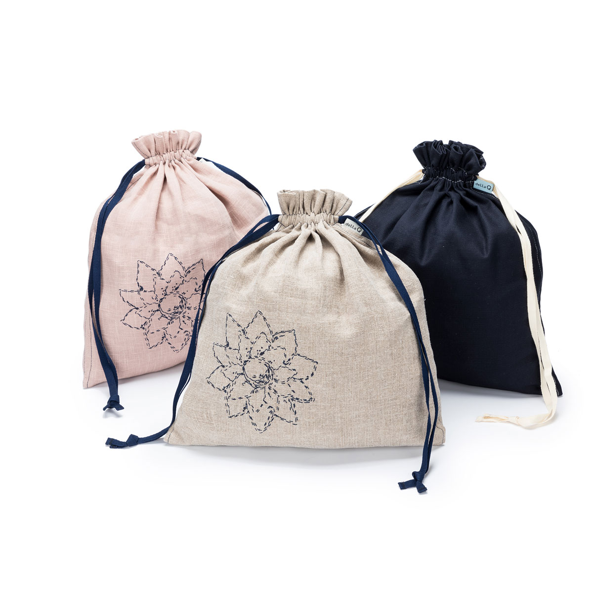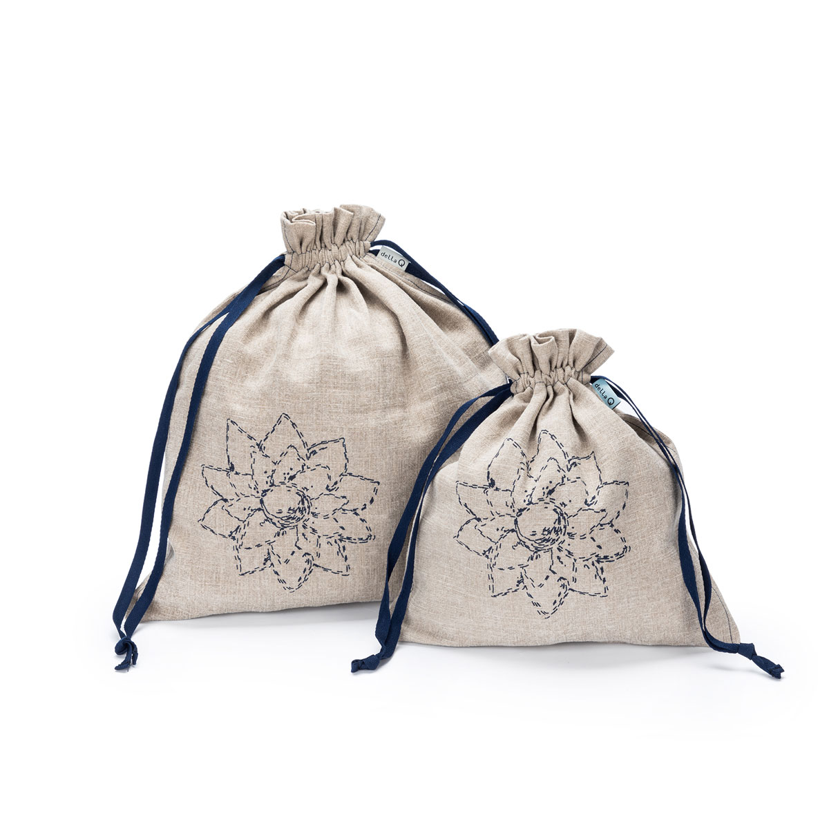 Linen Collection - Linen fabric printed with our signature flower and contrast stitching.