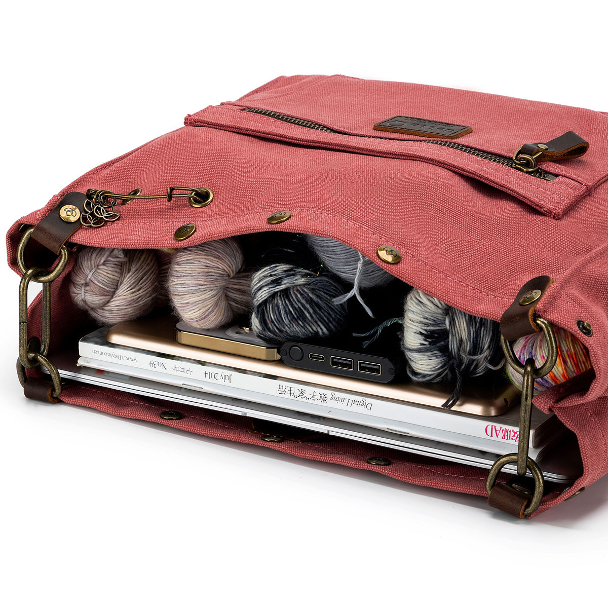 A tinier take on the Makers Tote, the new della Q Rucksack is three bags in one - part Knit Sack, part Oh Snap, part Tote bag!! Mini but mighty (we lovingly call her the Goldilocks of della Q bags!), the Rucksack features maker specific features like a yarn feeder, yarn cutter, and a decorative pin with emergency stitch markers. It also can be worn multiple ways (hello, crossbody, shoulder bag, and clutch!). If you're looking for a mid sized bag, great for your projects but also too cute to boot, the Rucksack is your gal at an amazing, affordable price!
