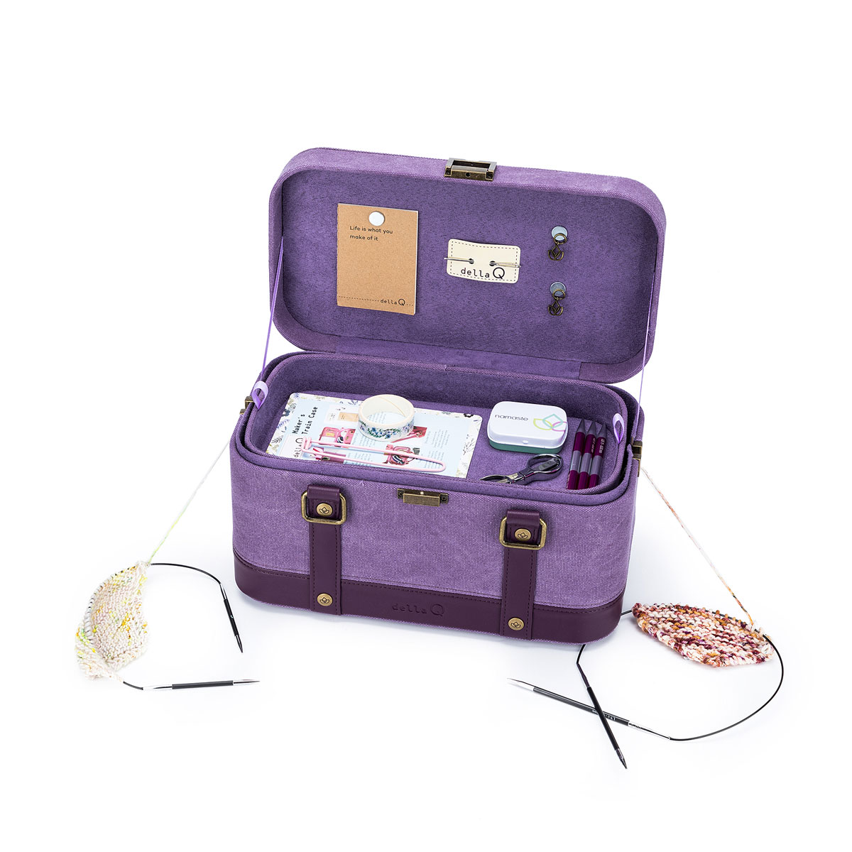 Designed with the wanderlust maker in mind (but works for everyone!), the della Q Maker's Train Case conveniently fits under most airplane seats! You can still crochet or knit when the case is closed - just feed your yarn through the metal opening on either side of the case! When the case is open, you can easily read your pattern as it's held in place with magnets against the lid.