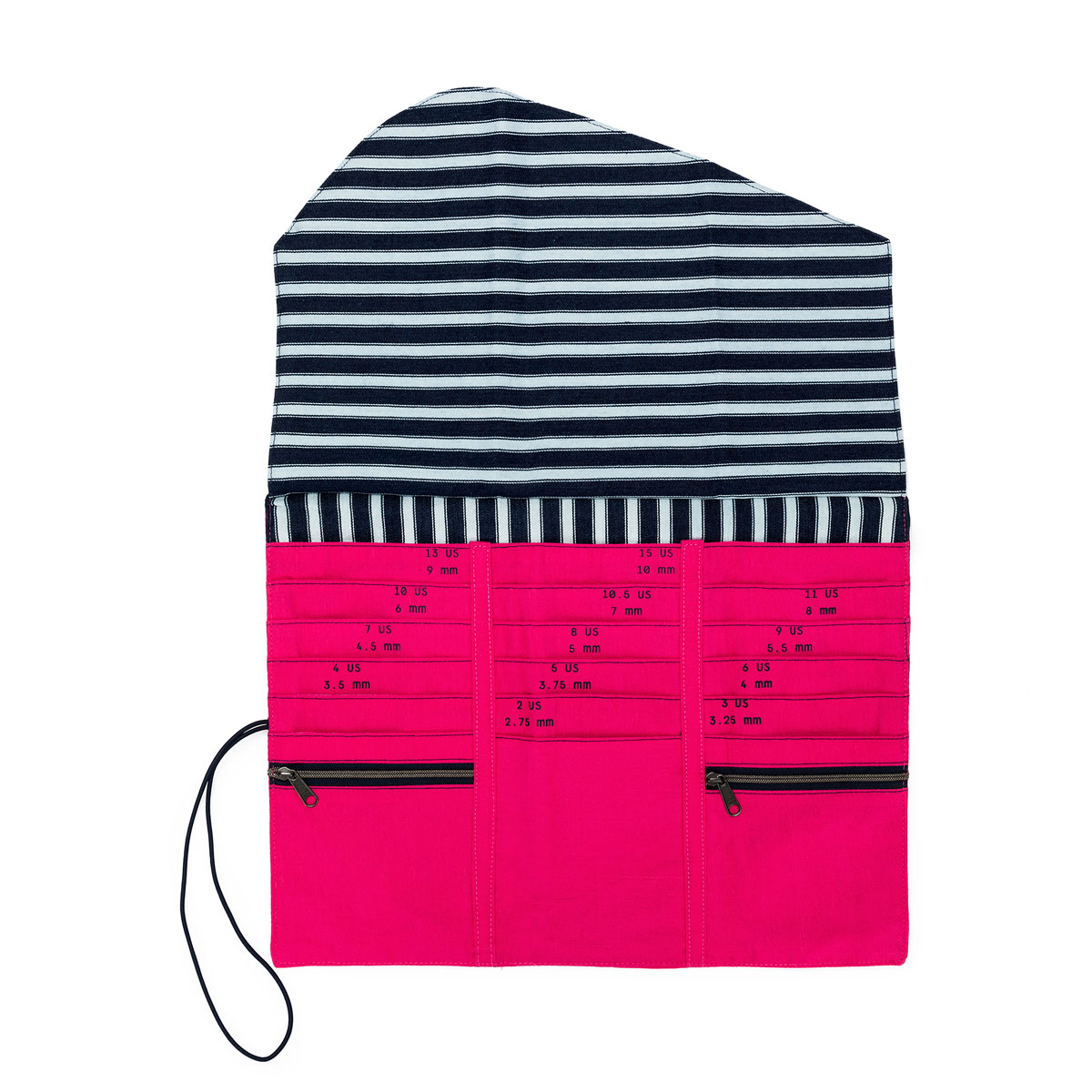 Keep your needles in the right spot with the della Q Tri-Fold Circular Needle Case! This case allows multiple knitting needles to be stored in each pocket. Its labeled pockets range from size 2 US (2.75 mm) to 15 US (10 mm) but you also get five unlabeled pockets for any extras you may have! This case also includes two zip pockets to store notions away. With all of the storage possibilities, it's no wonder that the Tri-Fold Circular Needle case is one of della Q's most popular needle cases! We've created several fun collections to choose from: